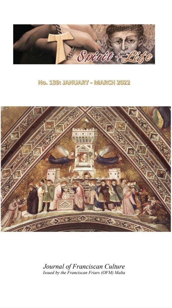 This issue of Spirit+Life features a paper on events in the life of Saint Francis during 1222 according to the Annales Minorumby Luke Wadding. This Franciscan historian records various events in the life of Saint Francis, which are also found in the Franciscan Sources, but without a specific date. Our aim is that of providing a set of papers on this theme during this year 2022. Anthony Carrozzo OFM provides a short paper entitled “Becoming a Prayer” in order to show the richness of the prayer of thanksgiving that Francis composed in chapter 23 of the Regula non bullata of 1221. Another paper is a translation of a study on the studium of Arabic in the Franciscan friary of Santa Marija ta’ Ġesù in Valletta, Malta, founded during the 17thcentury by Maltese friars who were professors of Arabic in the colleges of the Order in Rome, where missionaries prepared themselves to go to the Oriental missions and the Holy Land. This translation has been done as a result of the current restoration of the Arabic manuscripts conseved in the Provincial OFM Archives of Valletta, Malta, by a group of expert document and group conservators. Finally, the review features a translation of another section of the Chronicleof Nicholas Glassberger.